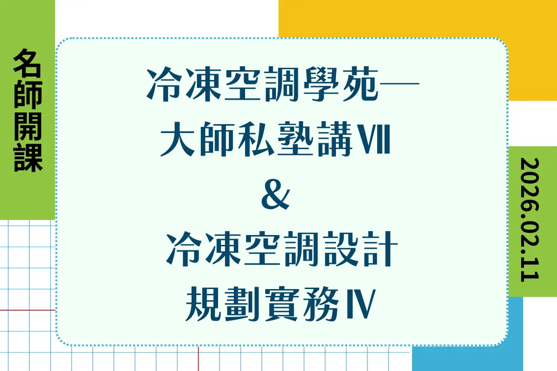 【名師開課】冷凍空調學苑─大師私塾講 Ⅶ & 冷凍空調設計規劃實務Ⅳ ... 繼續閱讀 >
